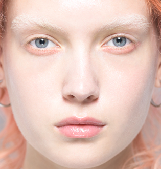 ヘアカラーに合わせ、下まぶたに ピンクオレンジのクリームカラーをぼかし、 やや退廃的orジャンキーな印象を演出。